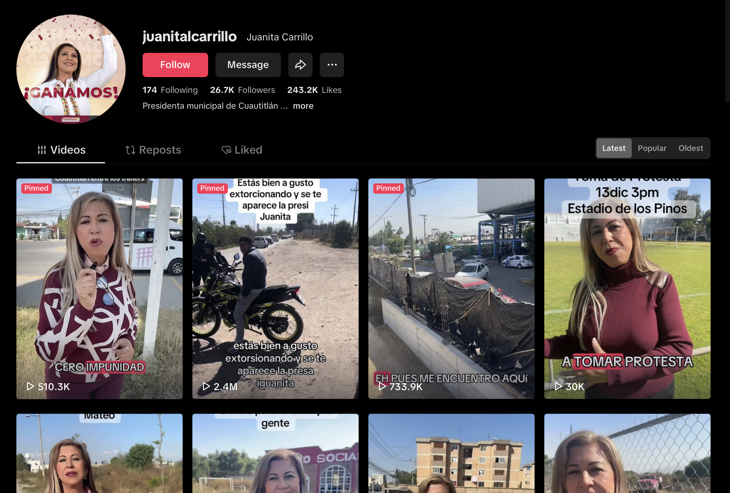 Soy Juanita Carrillo Luna. Las y los que me conocen saben que soy una mujer luchona, resiliente y responsable. Soy hija amorosa, madre respetuosa, empresaria honesta, representante social incansable y líder política humilde.